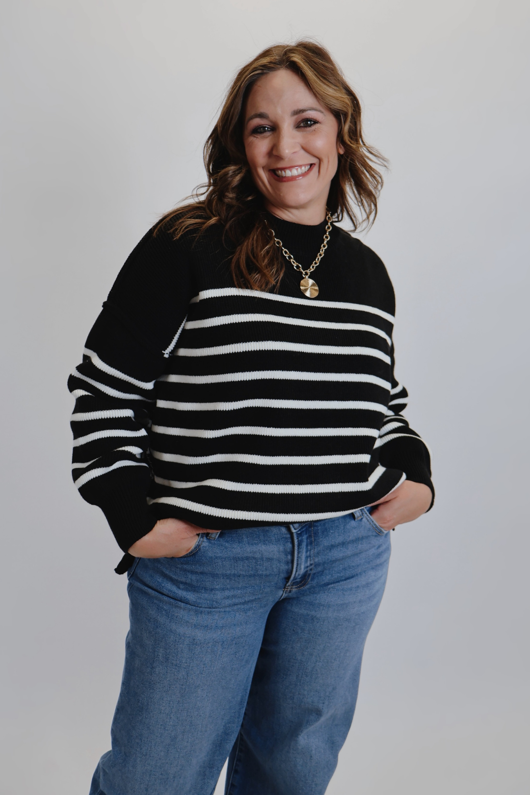 Schick, gemütlich und lässig-cool – der City Stroll Streifenpullover verleiht Ihrer Alltagsgarderobe zeitlosen Stil. Mit seiner entspannten, lockeren Passform und den sichtbaren Nahtdetails vereint dieser Pullover lässigen Komfort mit einem Hauch von Modernität. Die markanten elfenbeinfarbenen Streifen auf dem tiefen Anthrazitgrund sorgen für einen vielseitigen Look, der perfekt zu Jeans, Leggings oder Hosen für jeden entspannten Anlass passt.