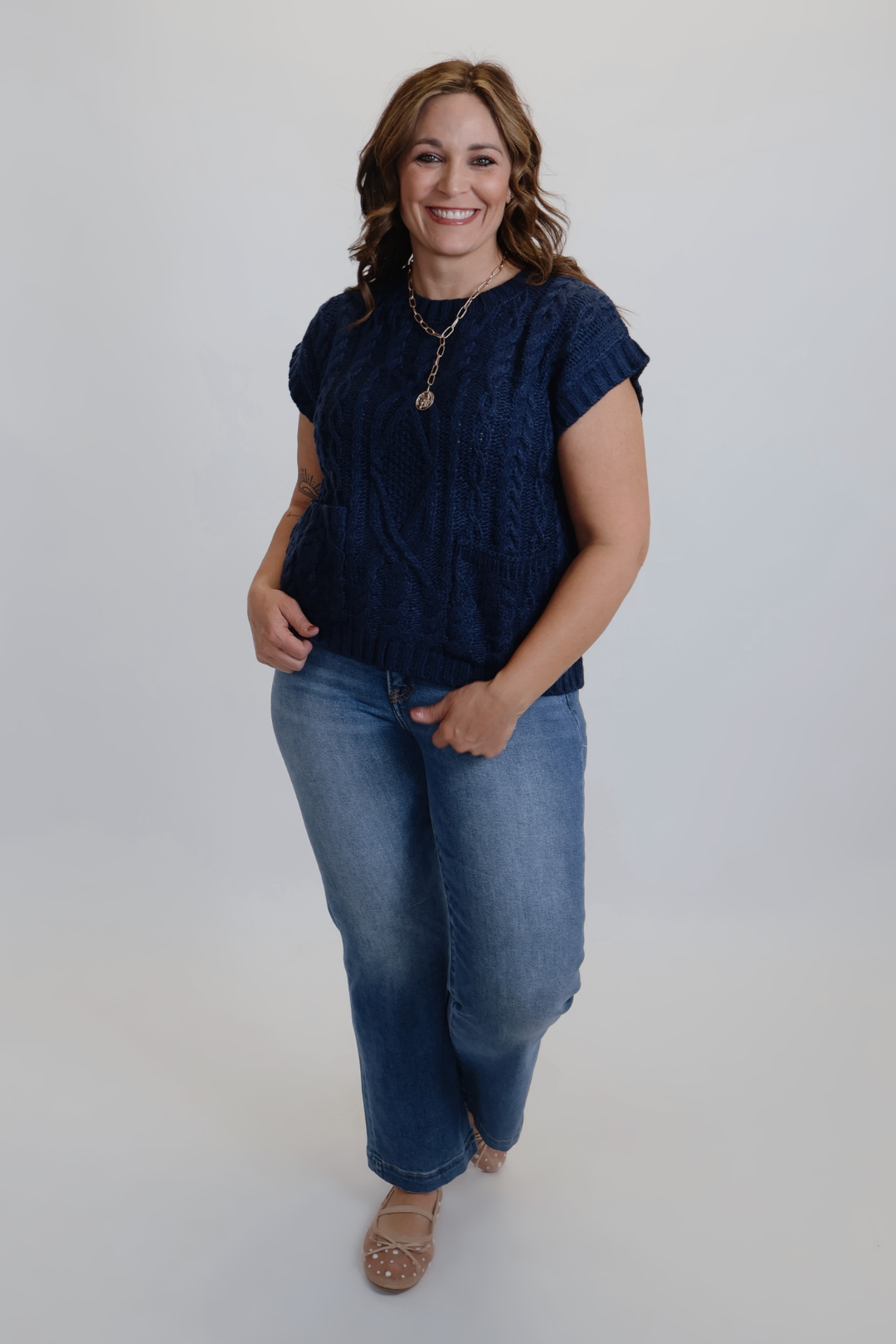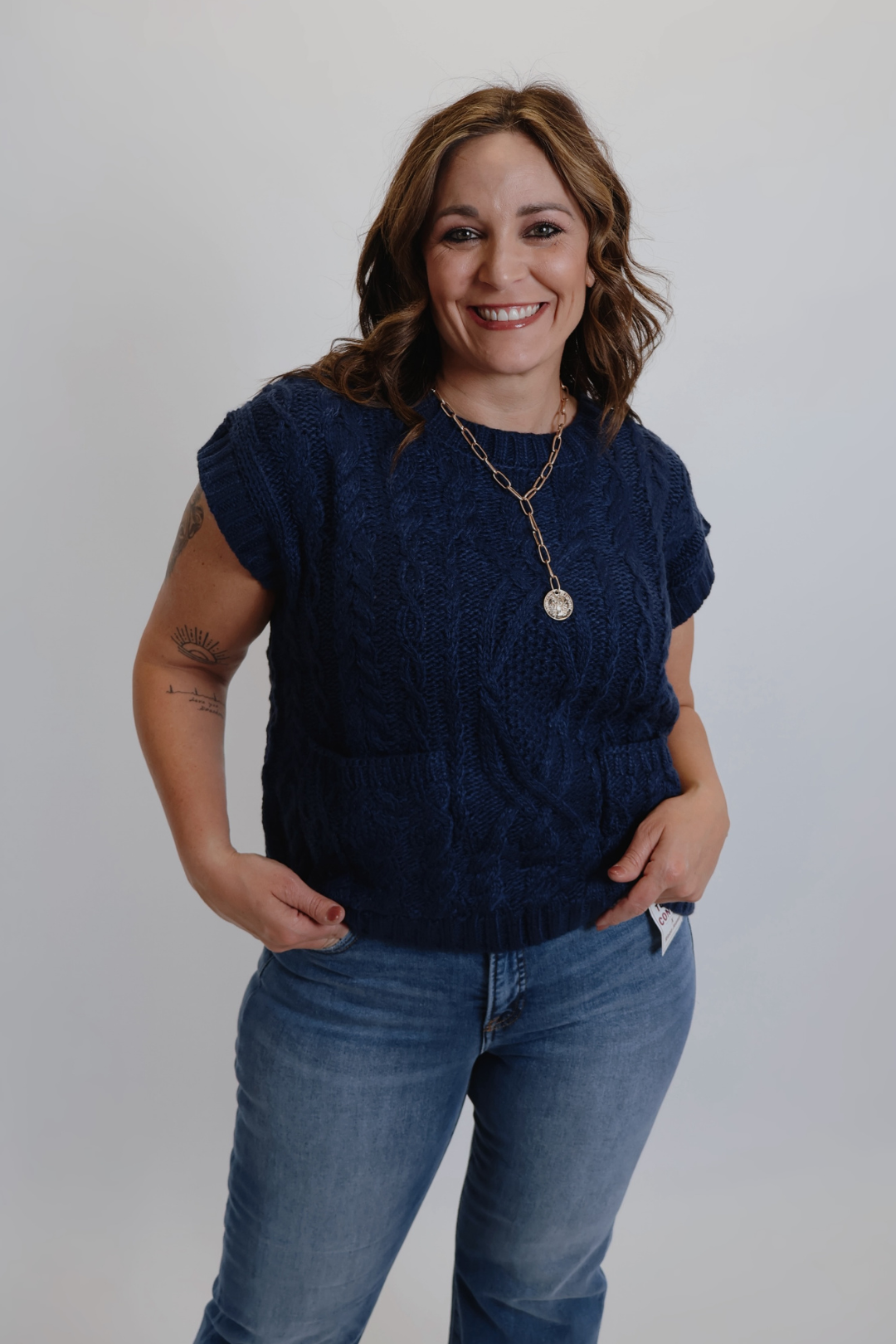 Die Mariner Zopfstrickweste verleiht Ihrem Alltagslook mühelos maritimen Charme. Mit ihrer groben Zopfstrickstruktur und dem lockeren, kastenförmigen Schnitt ist diese ärmellose Strickweste sowohl kuschelig als auch vielseitig. Der gerippte Rundhalsausschnitt und die aufgesetzten Taschen vorne verleihen dem Oberteil klassische Details und machen es perfekt zum Tragen über Blusen, Rollkragenpullovern oder Kleidern.