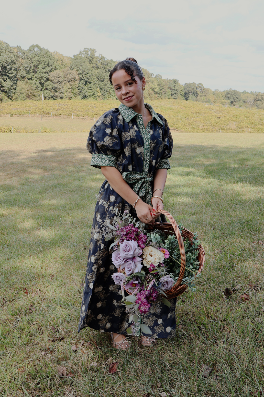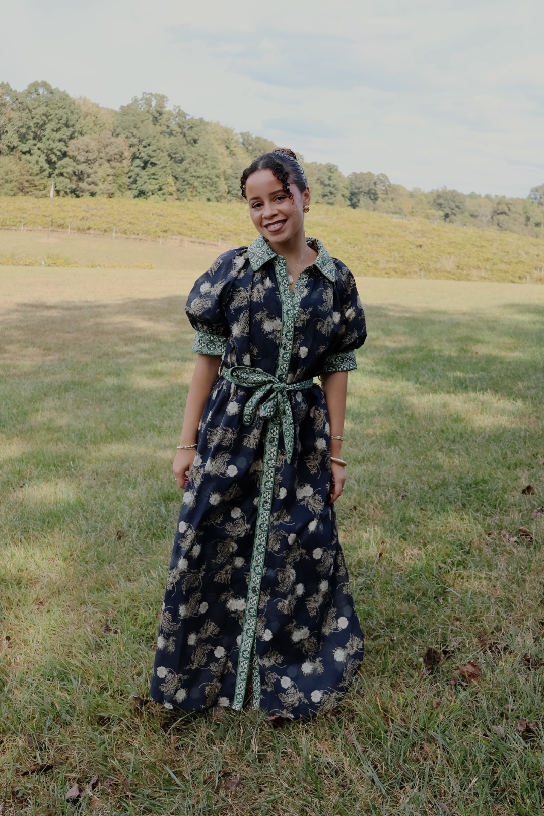 Midilanges Hemdblusenkleid mit Blumenmuster