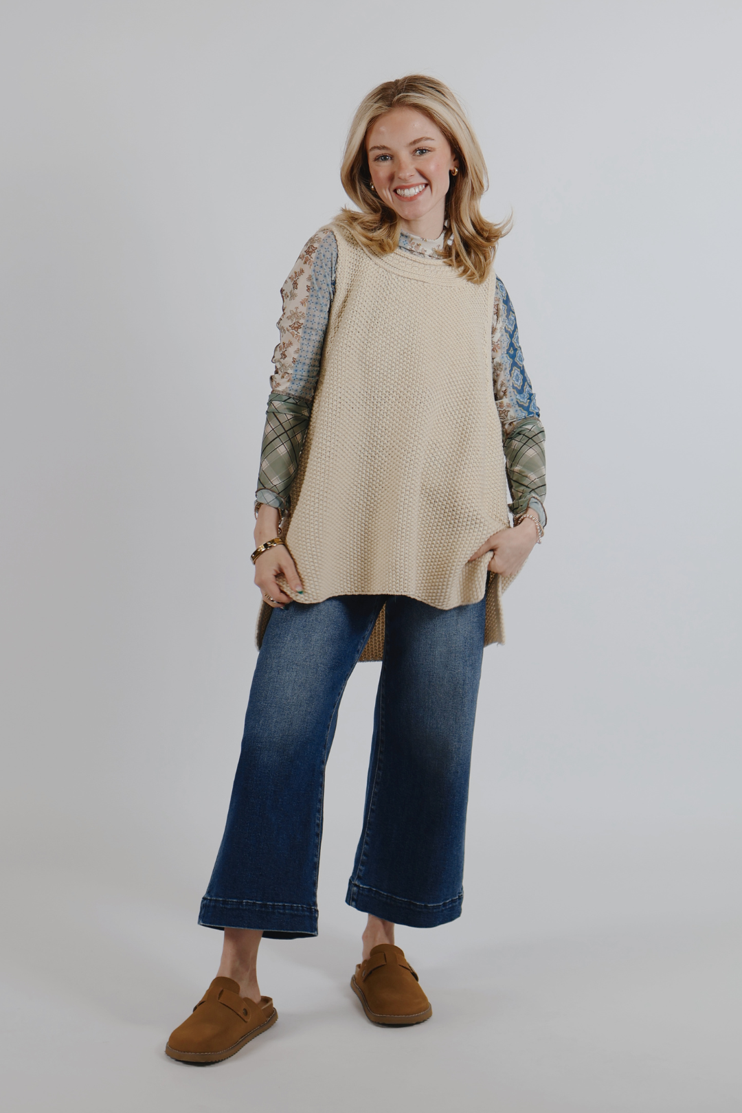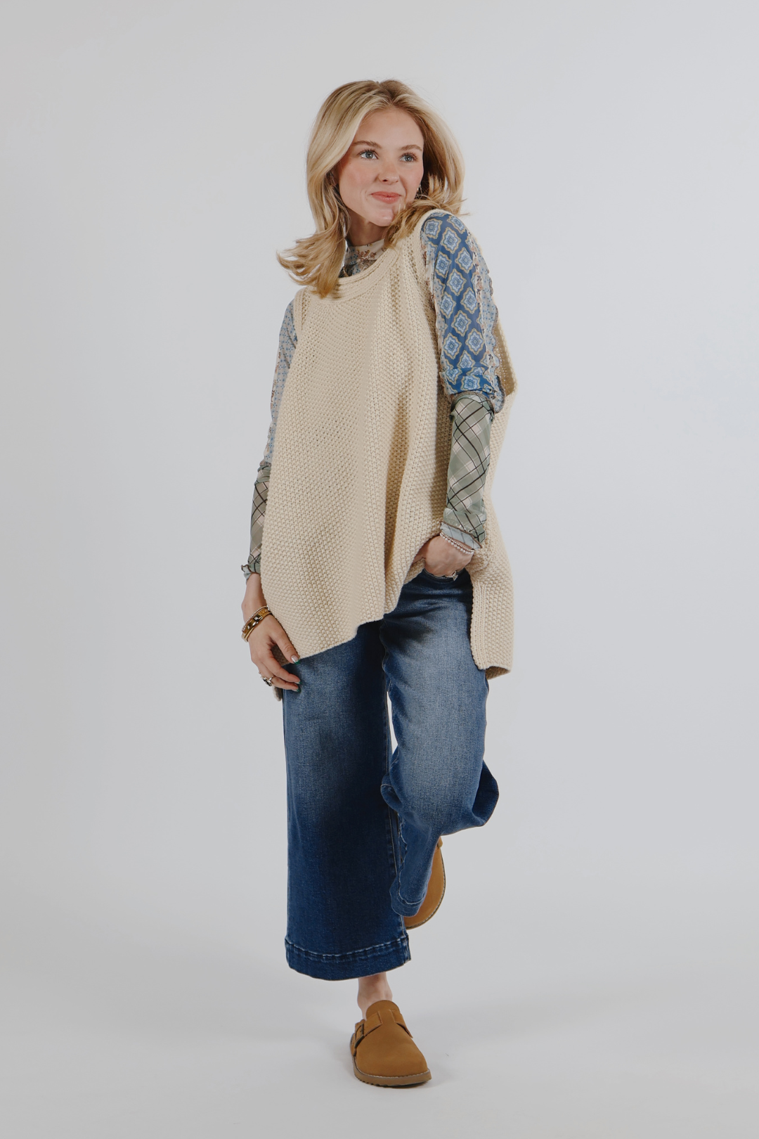 Diese Strickweste ist perfekt für den Übergang zwischen den Jahreszeiten oder für Lagenlooks und verleiht Ihrer Garderobe eine gemütliche Textur und einen eleganten Charme.
