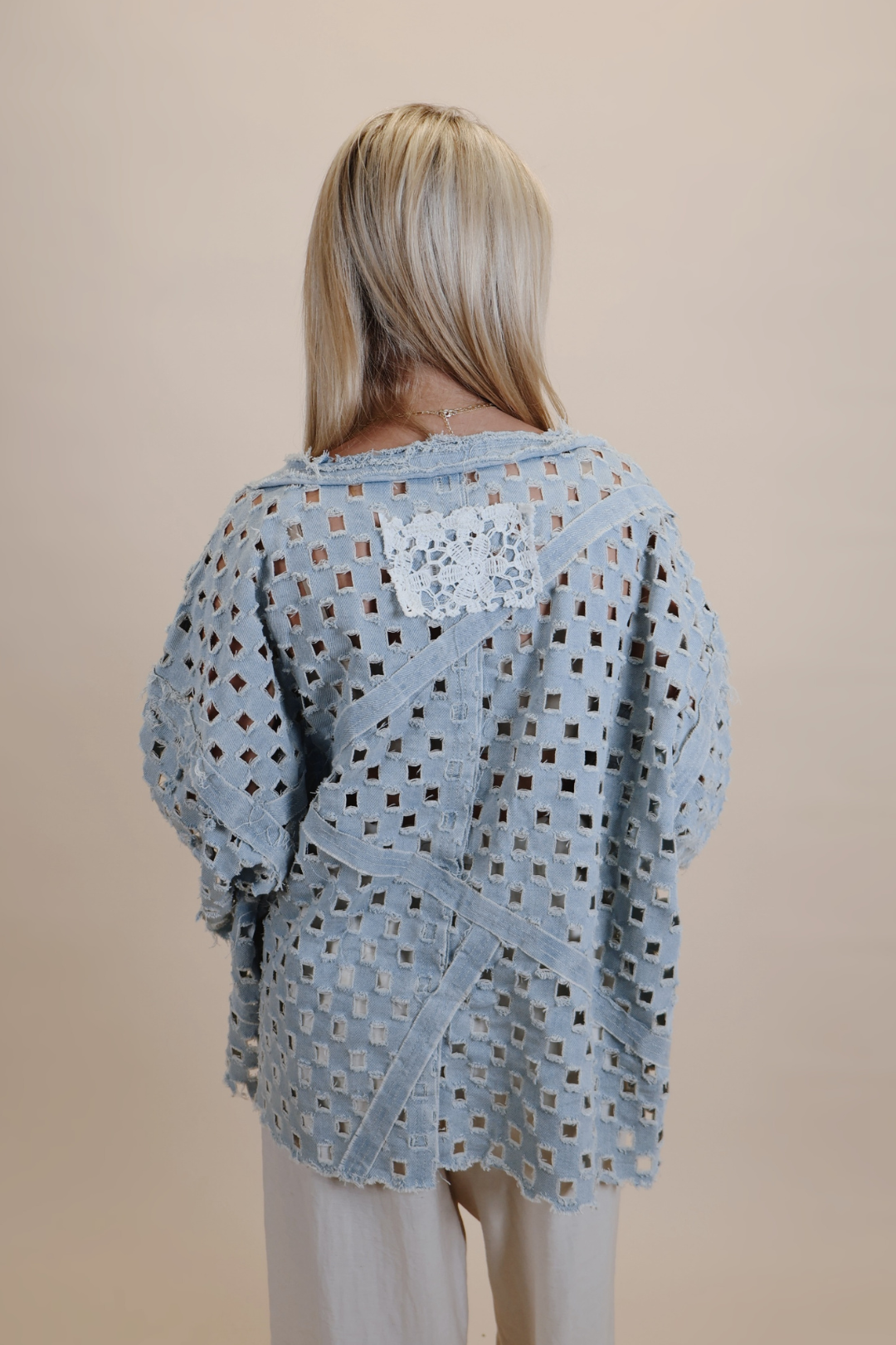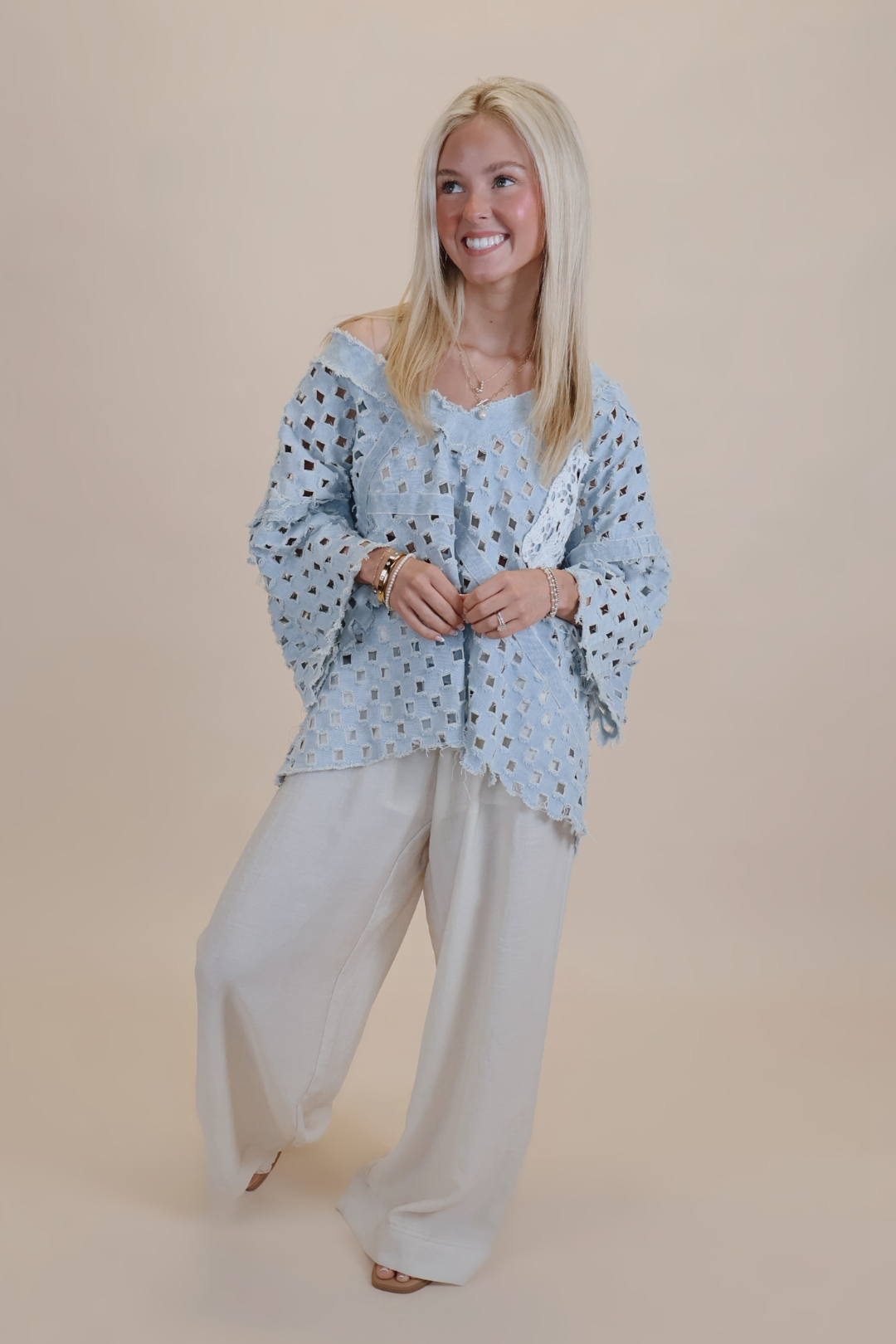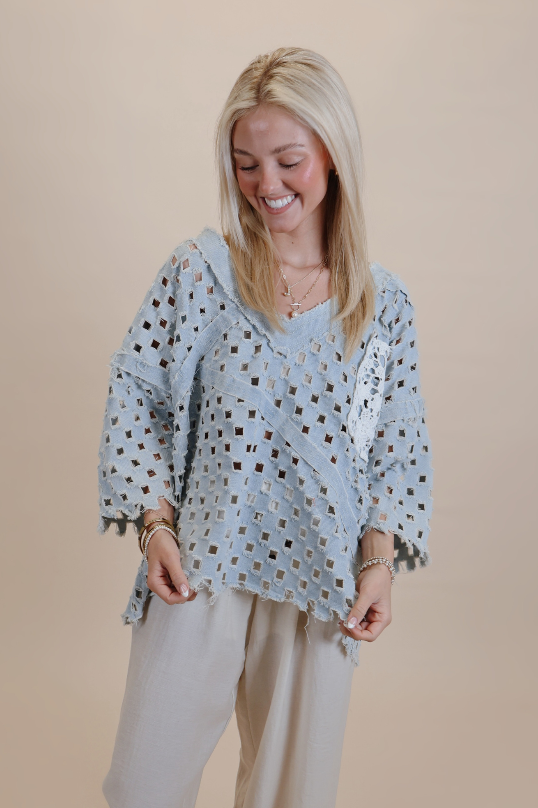 Entfessle deine verspielte Seite mit diesem V-Ausschnitt-Top! Die lockere Passform und die kurzen Ärmel sorgen für hohen Tragekomfort, während lasergeschnittene Details und ein Patchwork-Muster mit Streifenmuster dem Top eine freche Note verleihen. Eine süße aufgesetzte Tasche und ein Detail aus Spitze am Rücken runden dieses Schmuckstück aus 100 % Baumwolltwill ab – perfekt für Tage, an denen du einfach nur süß aussehen willst!