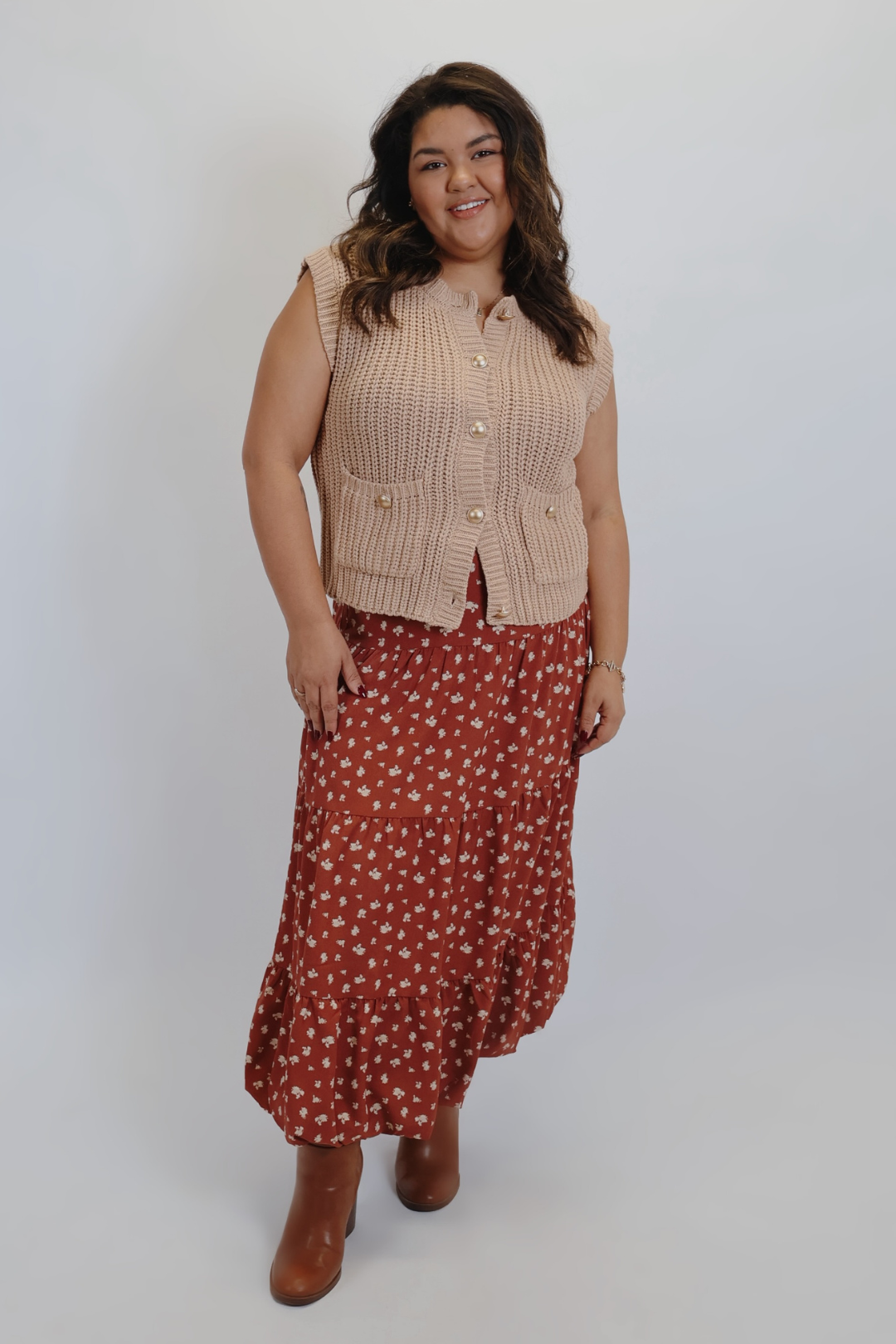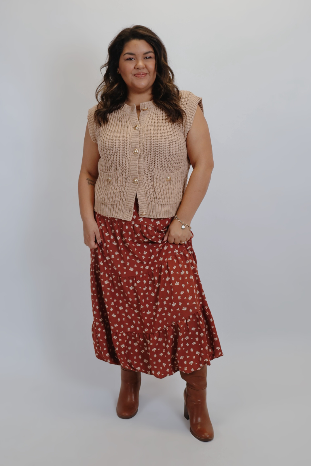 Die Vintage Charm Strickweste vereint zeitlosen Stil mit trendigem Touch. Diese weiche, grob gestrickte Weste besticht durch ihre ärmellose Silhouette und die antikgoldene Knopfleiste, die ihr einen Hauch von Retro-Eleganz verleiht. Mit seiner kuscheligen Baumwollmischung und dem vielseitigen Stil eignet es sich perfekt zum Tragen über Blusen, Rollkragenpullovern oder Kleidern in den verschiedenen Jahreszeiten.