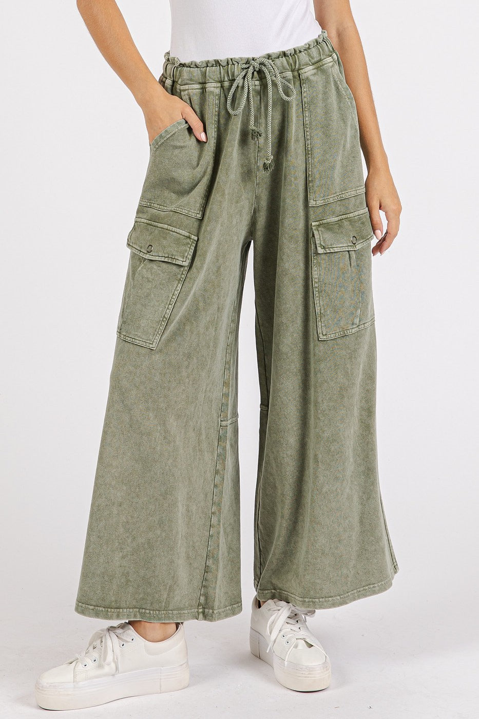 Entdecken Sie Ihre neuen Lieblingshosen für jeden Tag. Die Weekend Wash Wide Cargo Pants sind aus weichem French-Terry-Strick aus 100 % Baumwolle gefertigt und haben eine lässige, weite Passform, die jede Bewegung mitmacht. Die mineralische Waschung verleiht ihnen einen entspannten, lässigen Look – perfekt für Frühling und Sommer.